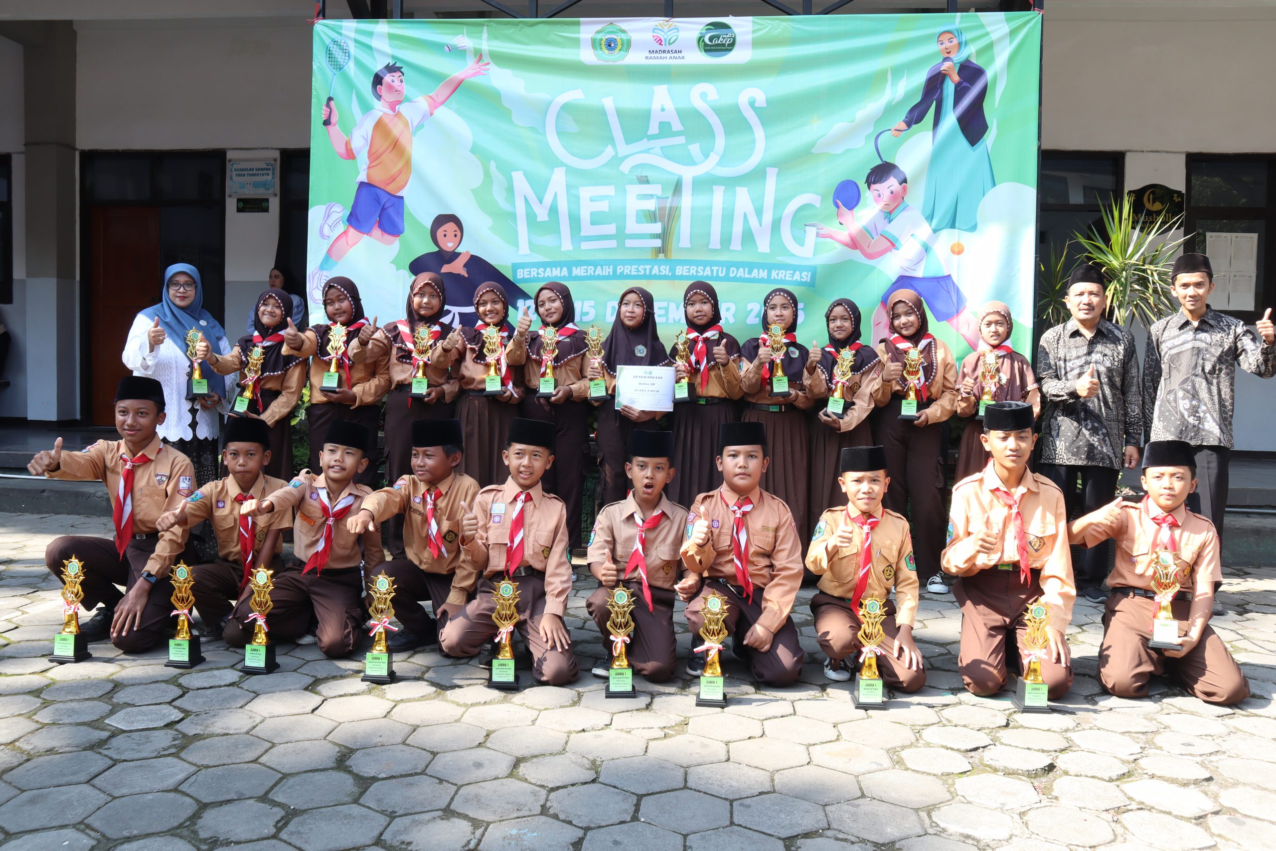 Sorak sorai membahana saat panitia mengumumkan para pemenang lomba Classmeeting. Kegiatan yang telah dilaksanakan sepekan sebelumnya ini menjadi wadah refreshing pasca-ujian sekaligus ajang mempererat kekompakan antar siswa. Berbagai lomba kreatif dan edukatif telah melahirkan juara-juara baru yang hari ini resmi menerima piala dan hadiah apresiasi dari sekolah.